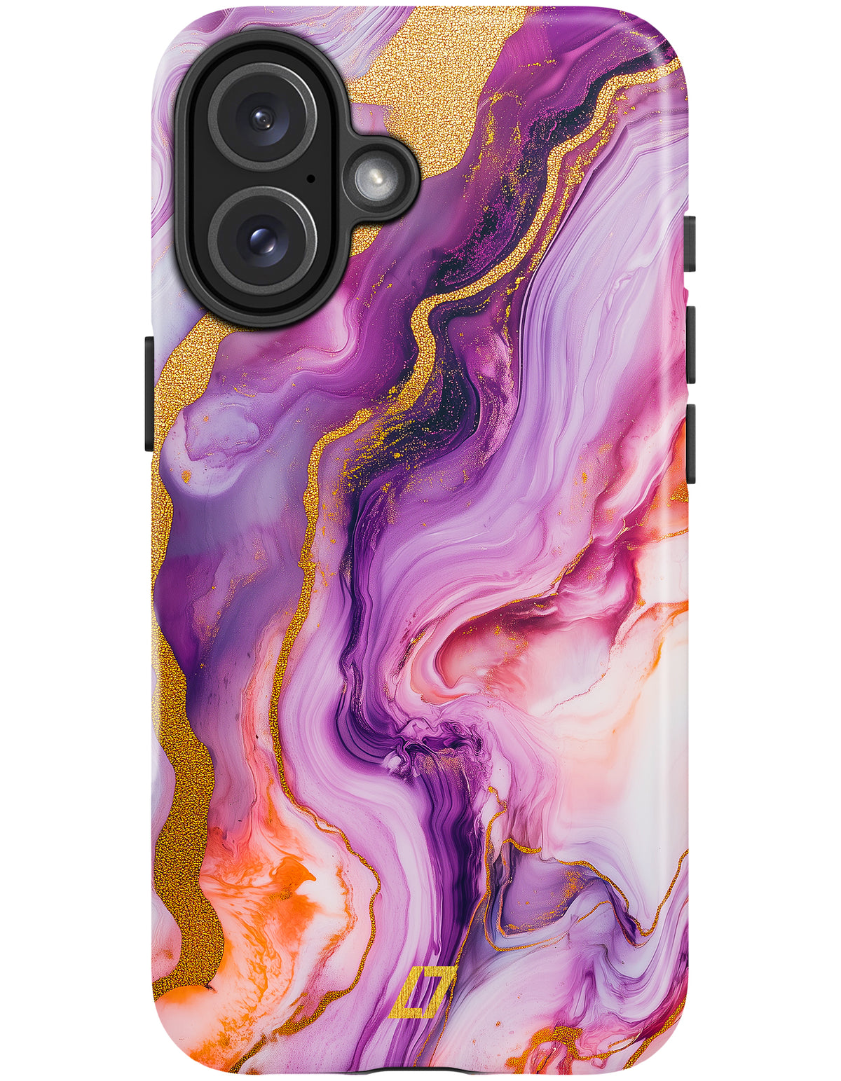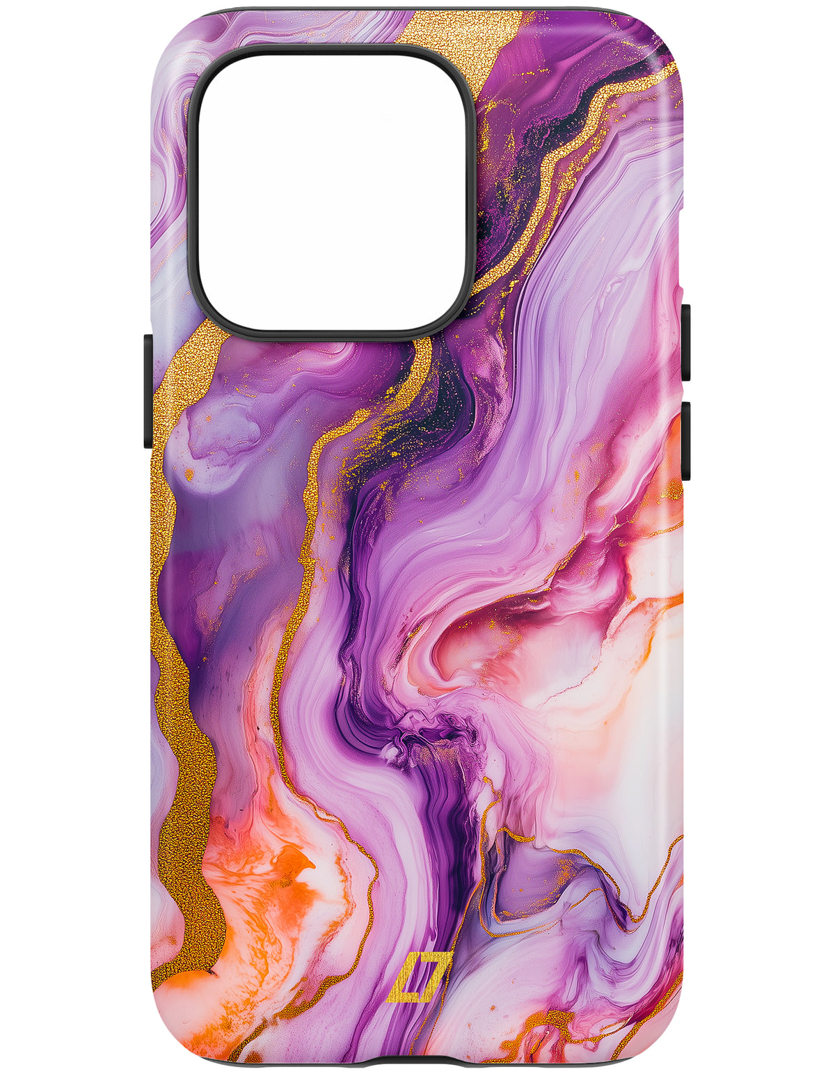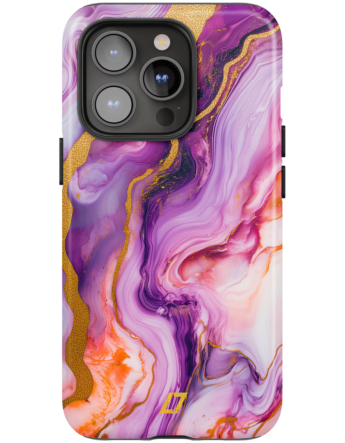 The Orchid Blaze iPhone Tough Case fuses gentle orchid hues with fiery orange accents and shimmering gold veins. This dual-layer case offers bold protection while adding a burst of vibrant flair to your style, perfect for those who love a mix of elegance and fire.